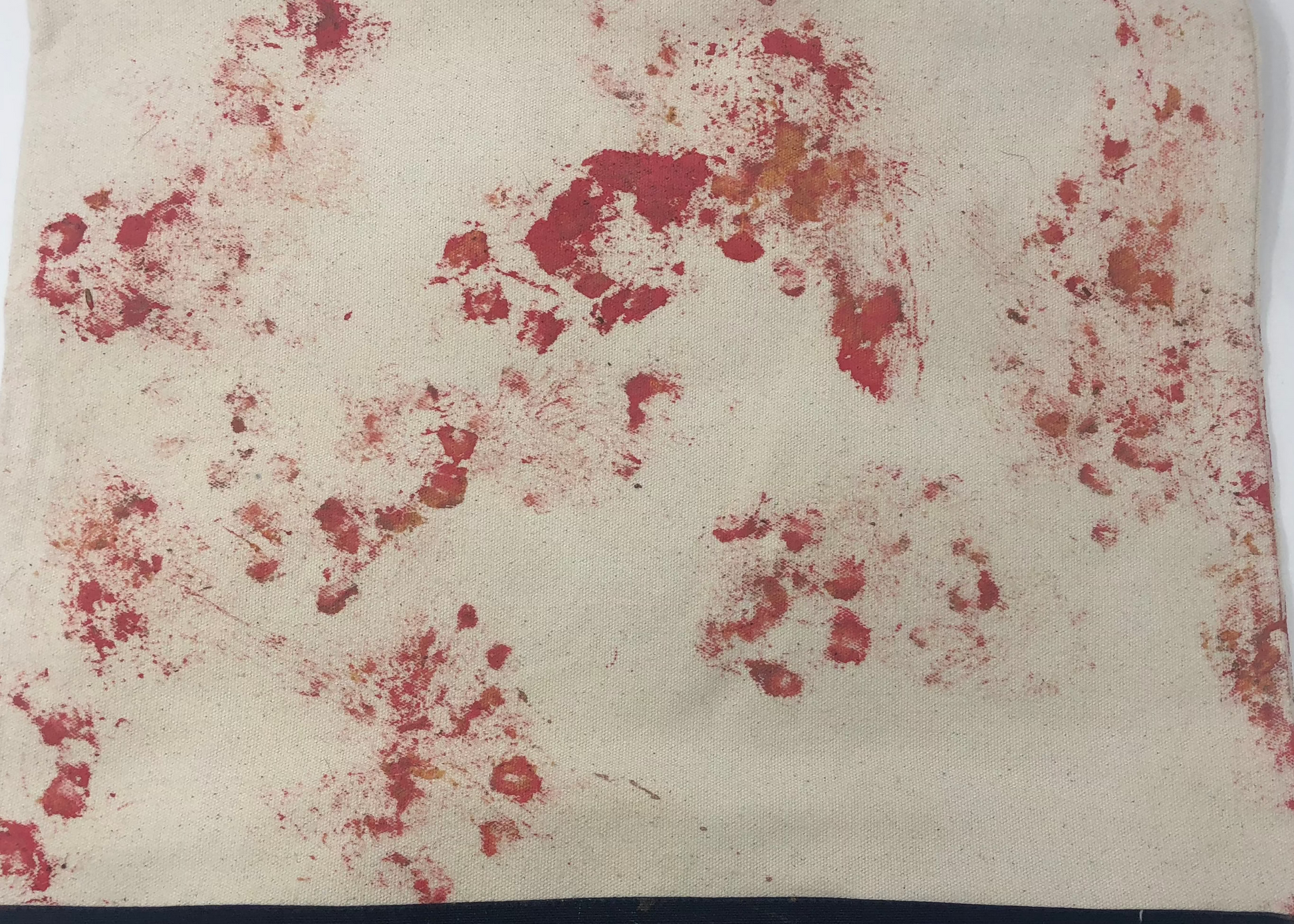 This is a canvas tote bag with red panda footprints made by one of our Wildlife Safari Red Pandas just for you!
