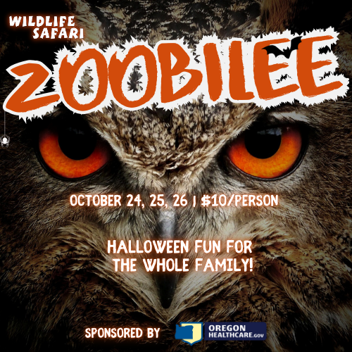Zoobilee is a family-friendly Halloween event at Wildlife Safari that features trick-or-treating, games, animal encounters, and a spotlight tour of the Asia exhibit in the Drive Thru! Only 15 Minutes from Roseburg!